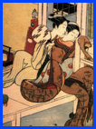 西川裕信筆「柱時計と美人画 鈴木春信画「ささやき」
